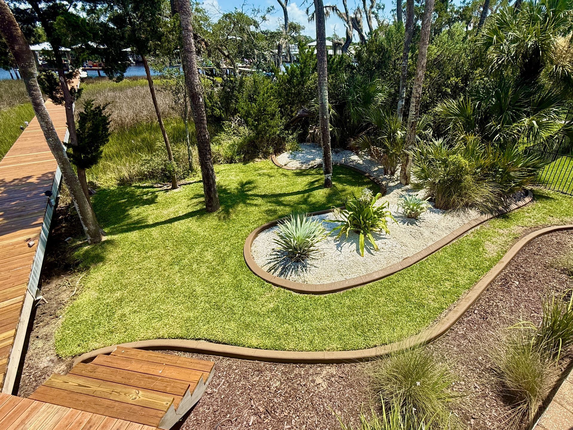 Concrete borders keep grass and weeds in check, making it easier to maintain a neat and clean landscape.